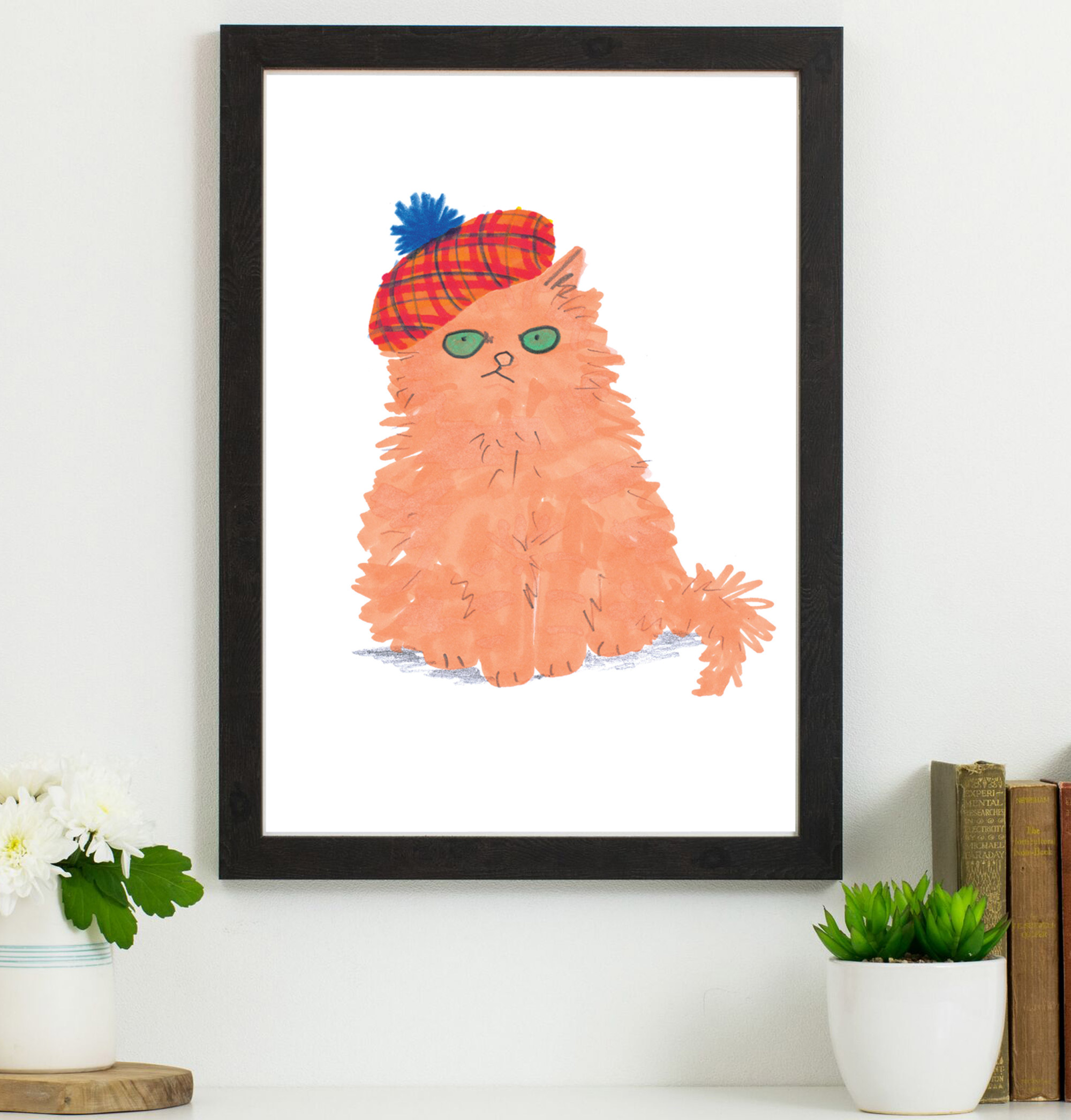 Cat In Tartan Hat Print