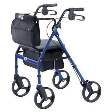 Hugo Elite Rollator Walker with Seat, Backrest and Saddle Bag, Blue