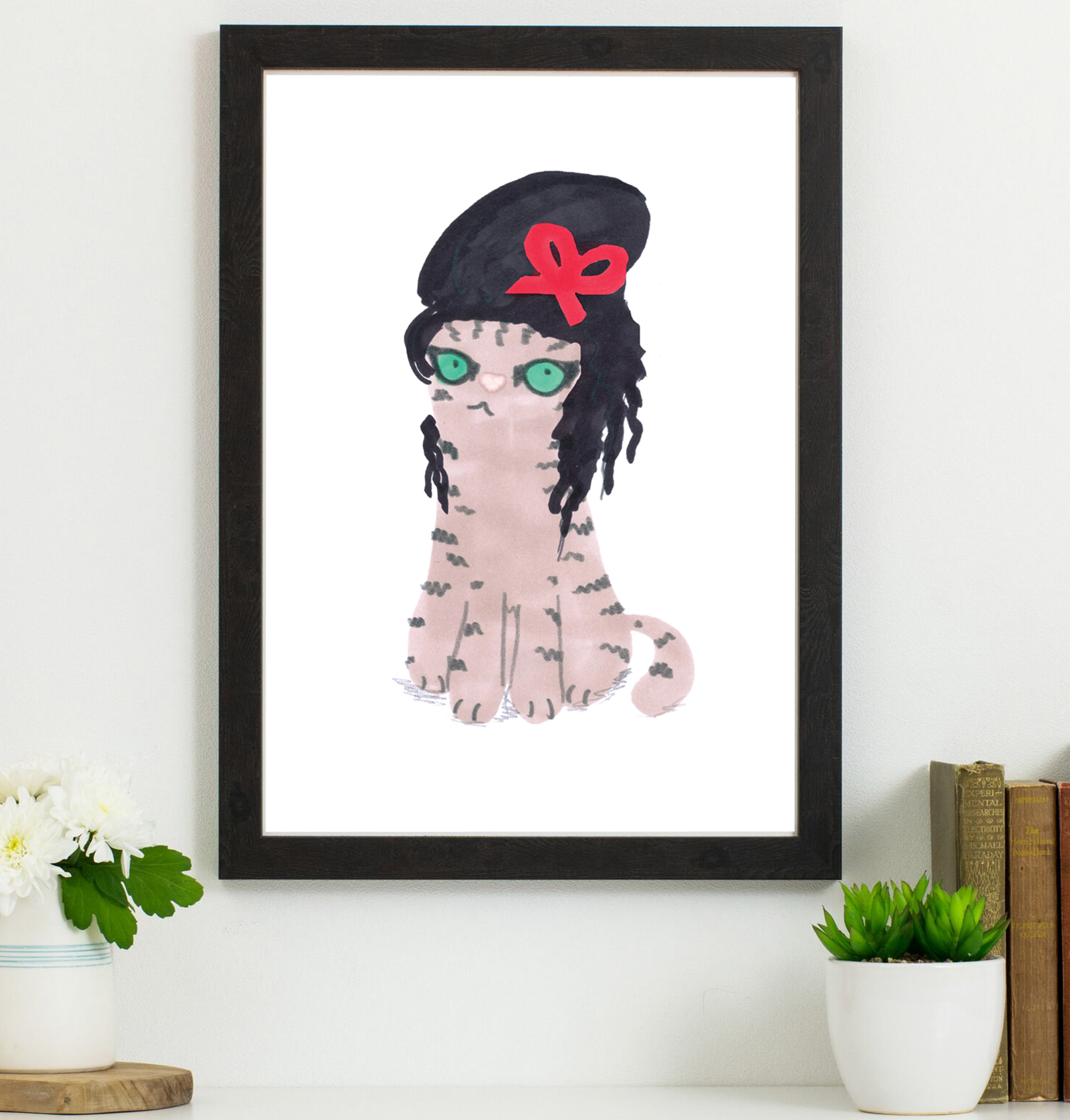 Cat In Lemmy Wig & Hat Print